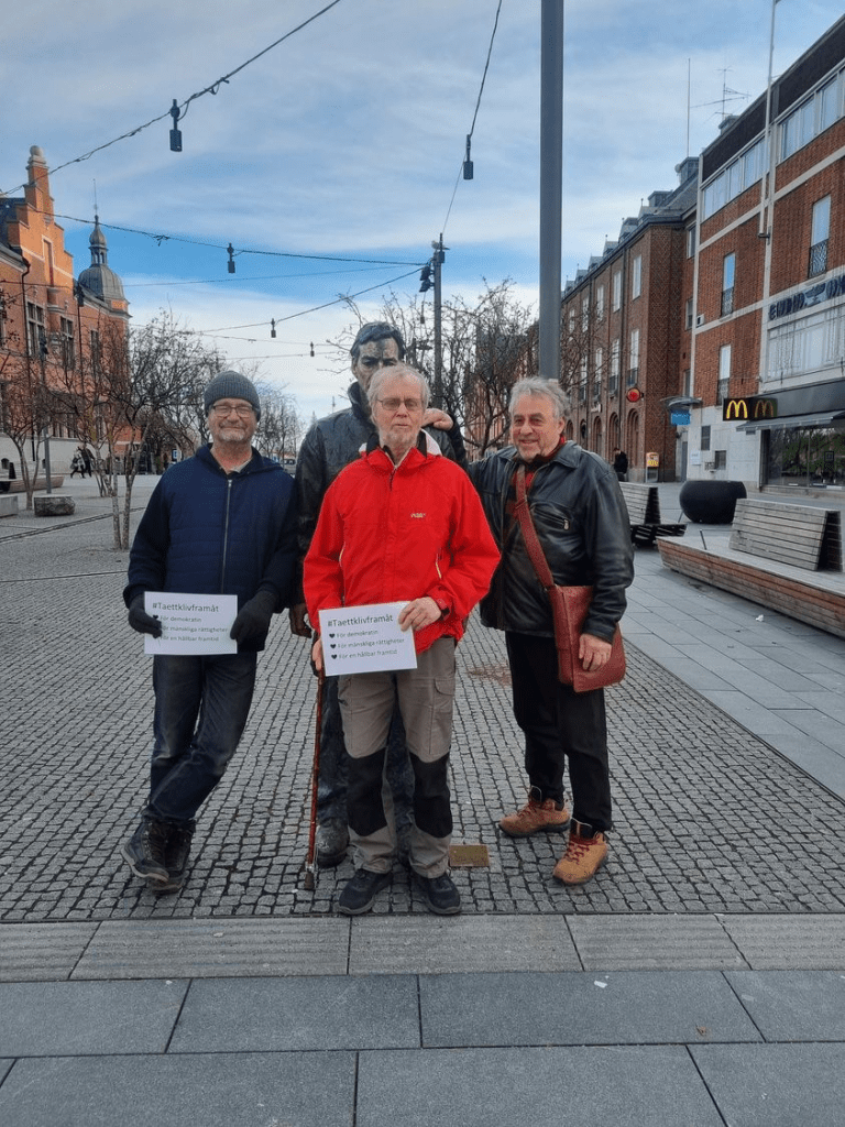 – En betydande del av ”Göran” i Umeå var med att #Taettklivframåt denna vackra men kyliga kväll i Umeå. Obs att den långa och lite stela mannen heter inte Göran, men det är okej ändå.Såklart att mannen har ett namn; K har berättat att han heter STANDING GÖRAN!