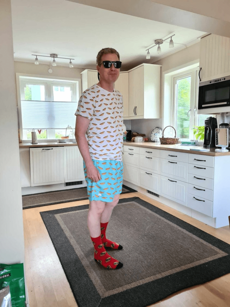 Jag kunde inte vara med på den gemensamma #Taettklivframåt promenaden idag i Göteborg så jag tog på sig allra finaste korv kläderna och hamburger strumporna och tog ett kliv framåt för demokratin i köket istället.