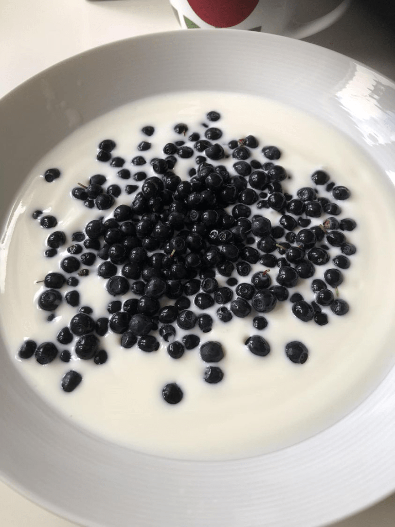 Frukost dagen efter skogspromenad med S. Tack!