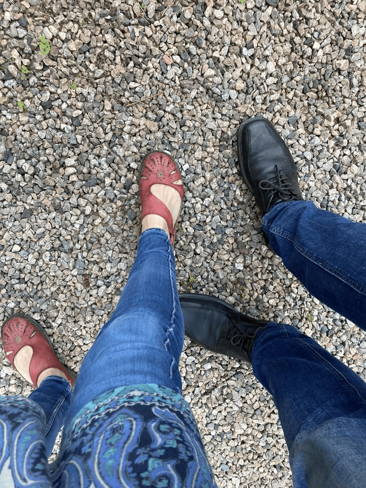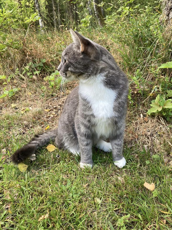 En glad katt gjorde oss sällskap, när vi nyss hemkomna från en liten semestertripp, tog en promenad för