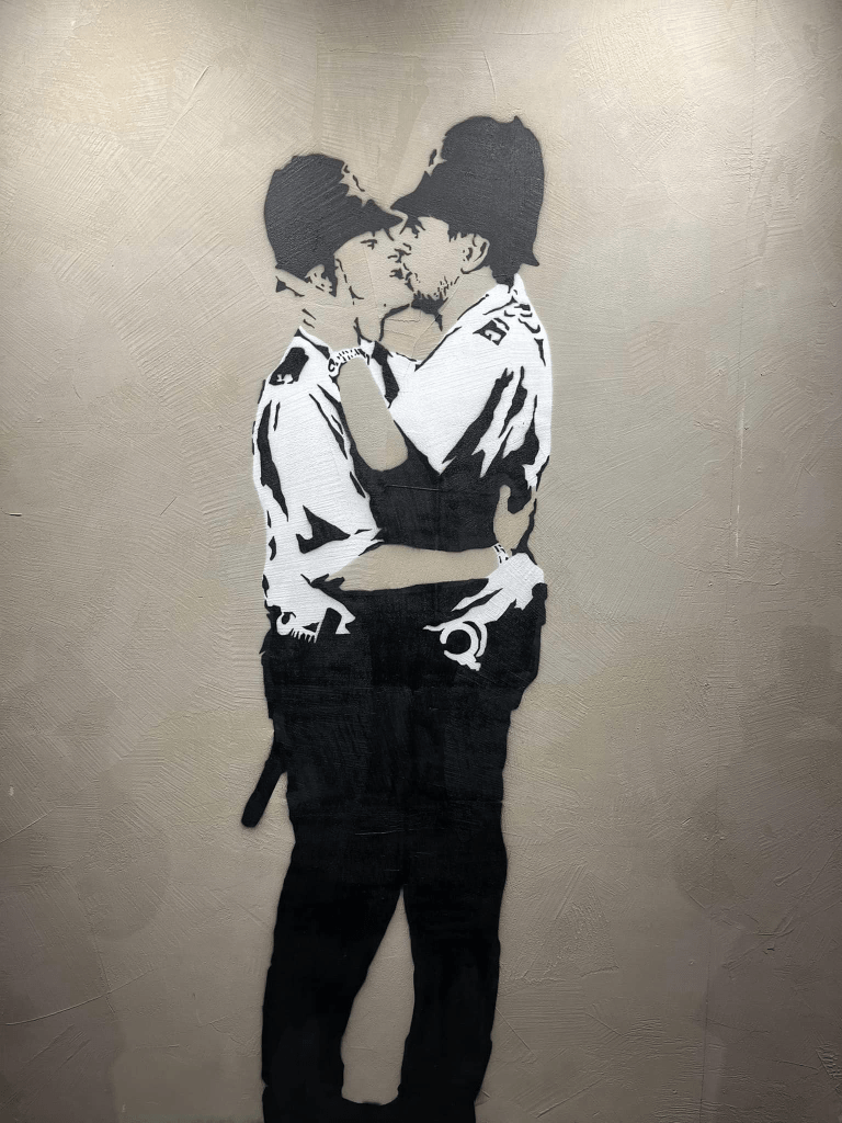 Kulturtanterna tog sig till Eriksbergshallen från Masthugget och Skåpesund för att se Banksyutställningen. Han lämnar inget därhän. Allt han gör är politiskt; anti war, anti kapitalism,antikonsumtion, etc..