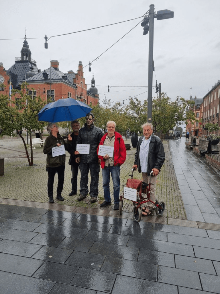 En liten grupp av ”Göran” har ikväll samlats på Rådhustorget i Umeå tillsammans med Agneta för att #Taettklivframåt för