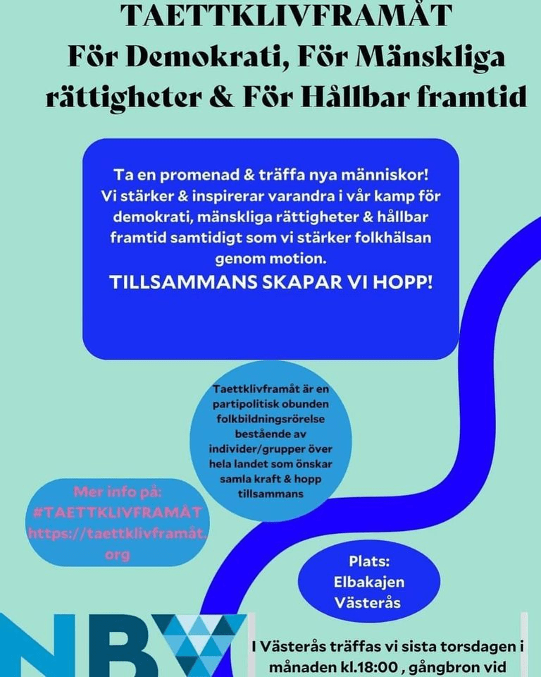 Ikväll promenerar vi för demokrati, mänskliga rättigheter och en hållbar framtid. Välkommen du också sista torsdagen i oktober kl 18.00!