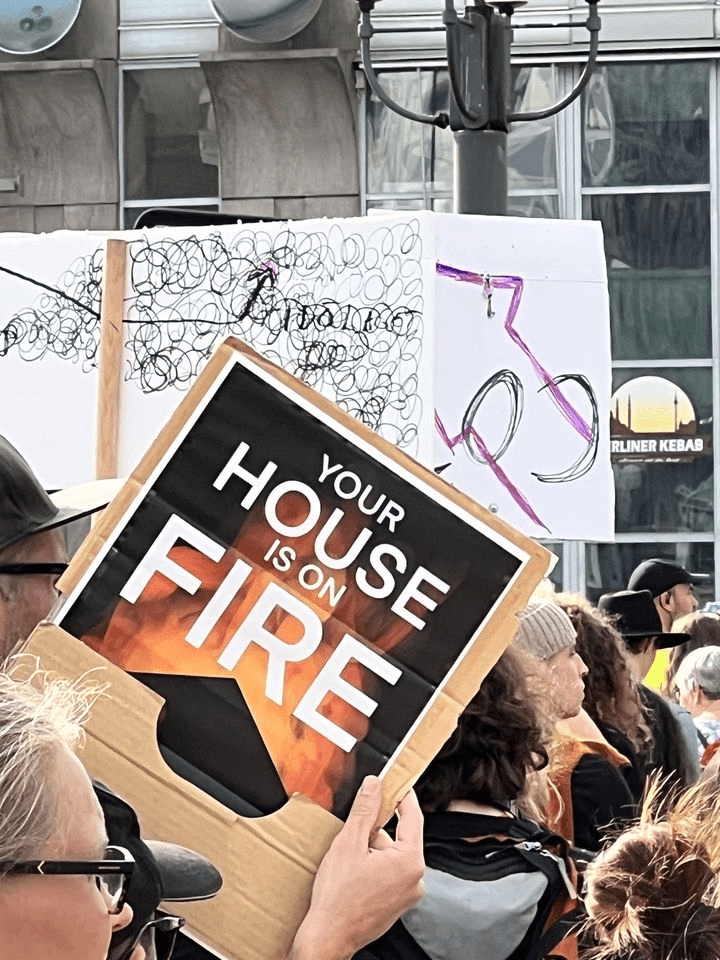 Dagen därpå var jag på en annan promenad genom den stad jag håller på att lära känna lite bättre. Längs Götgatan kom flera tusen människor under Fridays for future-flaggor och Inga nya gruvor i Sápmi och jag tog rygg på Per Bolund. Just innan Medborgarplatsen stod Greta Thunberg på en bänk och ropade i megafon. Vad vill vi ha? Klimaträttvisa! När, när, när? och vi svarar alla nu, nu, NU!