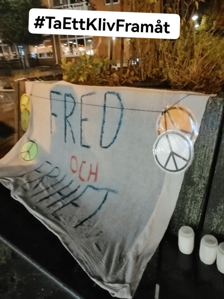 Vi ville #TaEttKlivFramåt för en hållbar framtid, för folkbildning, mänskliga rättigheter och fred – men kalla vindar och isigt regn släckte våra ljus och människorna stretade förbi med uppdragna rockkragar och blicken fixerad på skyddande bilar och butiker..