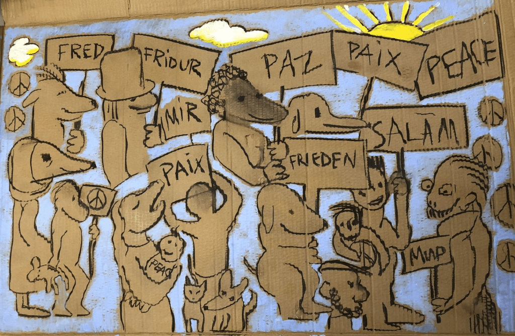Med lyktor och facklor manifesterar vi för fred, demokrati, mänskliga rättigheter och en hållbar framtid.