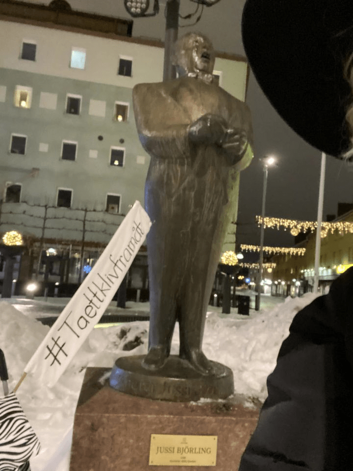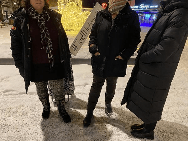 Tre damer från M*t, ett känt Borlängeföretag, ses #Taettklivframåt TILLSAMMANS för DEMOKRATI, MÄNSKLIGA RÄTTIGHETER och EN HÅLLBAR FRAMTID på Sveatorget.