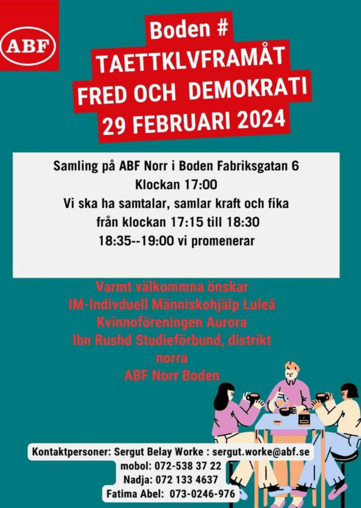 Vi haft mycket roligt tid med Boden #Taettklivframåt Fred och Demokrati träff på ABF norr Boden.