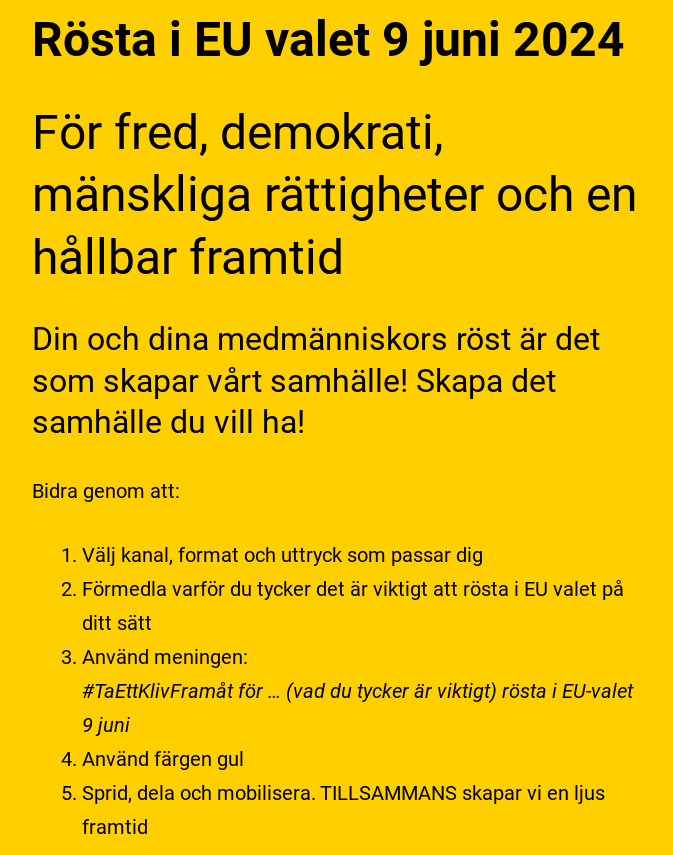 I april började valkampanjen #Taettklivframåt för fred, demokrati, mänskliga rättigheter och en hållbar framtid och den fortsatte i maj.