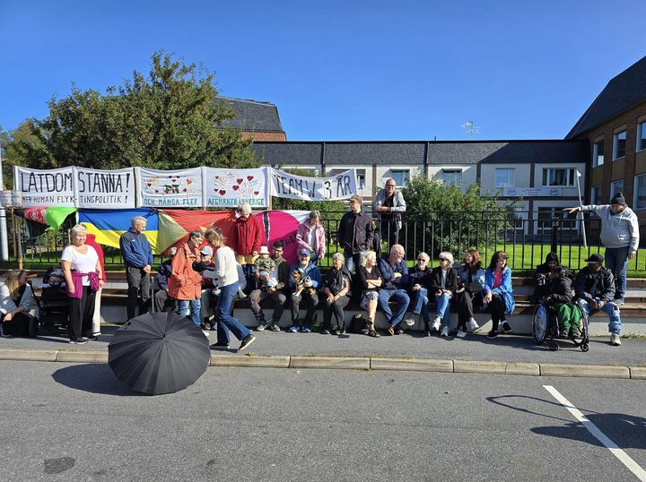 Lördag den 31 augusti 2024. 28 manifesterande på torget mot migrationspolitiken, för demokratin och dem vi särskilt värnar om, Ousama och stödet till det afghanska folket, bl.a.Malås egen Ghader