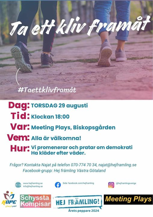 HOPE erbjuder alla medlemmar att vara med på en givande promenad för att skapa nätverk, utveckla språket, gemenskap och få kunskap om demokrati.