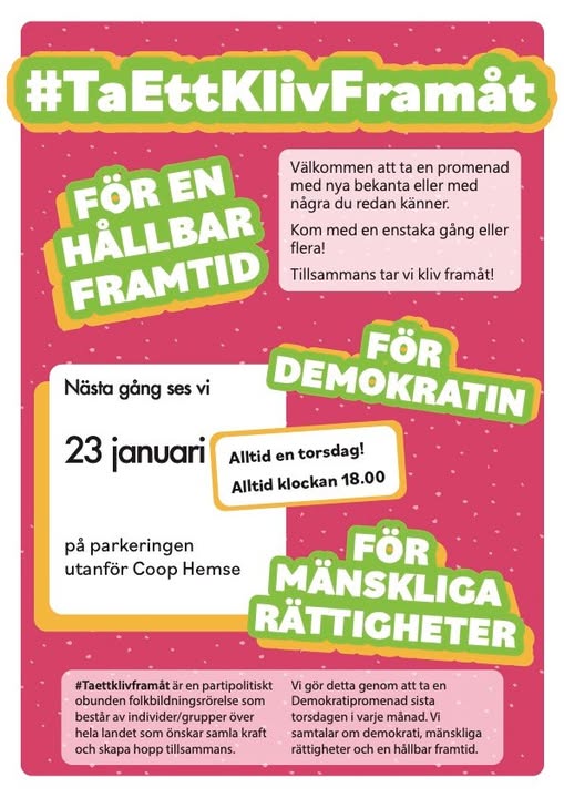 ! Många som läser våra inlägg uttrycker en vilja att göra något. Att tillsammans åstadkomma förändring. Det är helt underbart att vi är så många som tycker detta är viktigt! Viktigt nog att lägga tid och kraft på då vi upplever att våra styrande tappat kursen. Vi behöver med olika medel visa att vi inte accepterar den väg de valt att gå. Här kommer en tipslista på vad vi kan göra: – Kontakta politiker, gärna lokalpolitiker och be dem gå vidare med frågorna inom sina partier. Du behöver inte vara politiskt aktiv, kontakta flera partiföreträdare och berätta att du är en bekymrad medborgare. – Skriv insändare enskilt eller i grupp – Kontakta media och be dem ta upp frågorna i nyheter eller artiklar. Lokalmedia är lättast att nå. TV, Radio, Tidningar. – Kontakta personer i Migrationsverkets ledningsgrupp. Visa din oro över hur de tolkar sitt uppdrag. De handlar på regeringens uppdrag, men gör även egna tolkningar. – Kontakta företrädare för näringslivet, arbetsgivarorganisationer, fackförbund och enskilda företag som anställer nyanlända. Be dem göra sina röster hörda. – Kontakta hjälporganisationer och be dem om att vara med i engagemanget. T ex Röda Korset, Rädda Barnen, Amnesty, Stadsmissionen, IMI Ingen människor är illegal, mfl. – Kontakta kyrkor och be dem kliva fram i engagemanget. T ex Svenska kyrkan, Pingstkyrkan, Equmeniakyrkan, Frälsningsarmén mfl. – Kontakta idrottsföreningar med många nyanlända t ex fotbollsklubbar, gymnastikföreningar mfl. Be dem låta deras engagemang höras. – Engagera dig lokalt i föreningar som jobbar för och med medmänsklighet. – Bjud in vänner att gilla denna sida – Vi står inte ut – och dela inläggen som aldrig förr. Då sprids kunskapen till fler och fler och förhoppningsvis börjar fler engagera sig. – #Taettklivframåt. Gå med i denna rörelse som vill koppla ihop alla demokratiska och medmänskliga krafter genom att alla börjar använda #Taettklivframåt i sociala medier. Arbeta för medmänsklighet, demokrati och en hållbar framtid. Läs mer på Taettklivframat. org. Opolitisk rörelse för enskilda, företag och organisationer. Skriv fler tips i kommentarsfältet på vad vi kan göra enskilt eller tillsammans. Gå samman på din ort, i föreningar och i nätverk på sociala medier. Dela och sprid inlägget så fler nås. Låt oss tillsammans göra allt vi kan för att vända detta! Varmt tack för ditt engagemang
